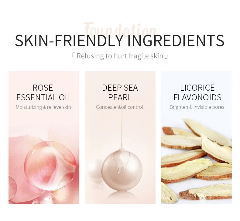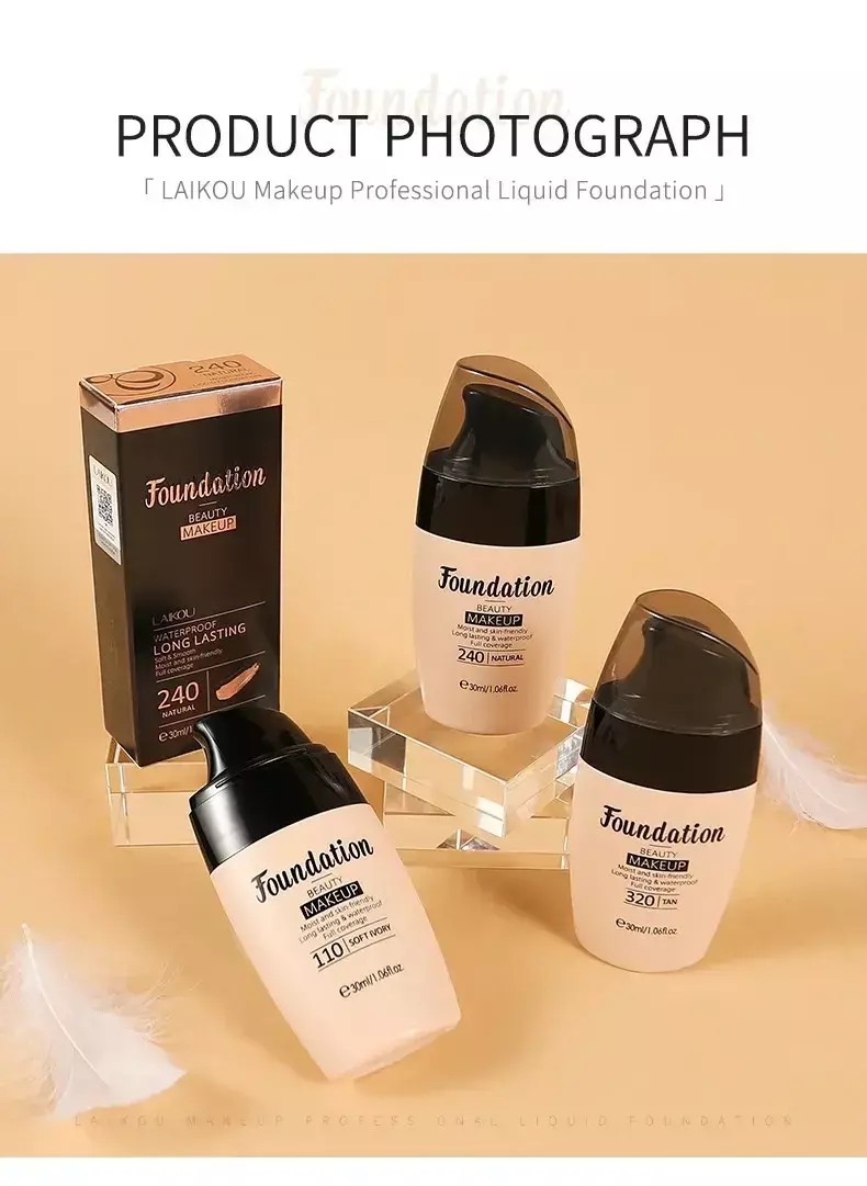A tecnologia da LAIKOU Foundation L053 proporciona uma cobertura de média a alta, capaz de corrigir manchas, sardas, olheiras e linhas finas sem craquelar.