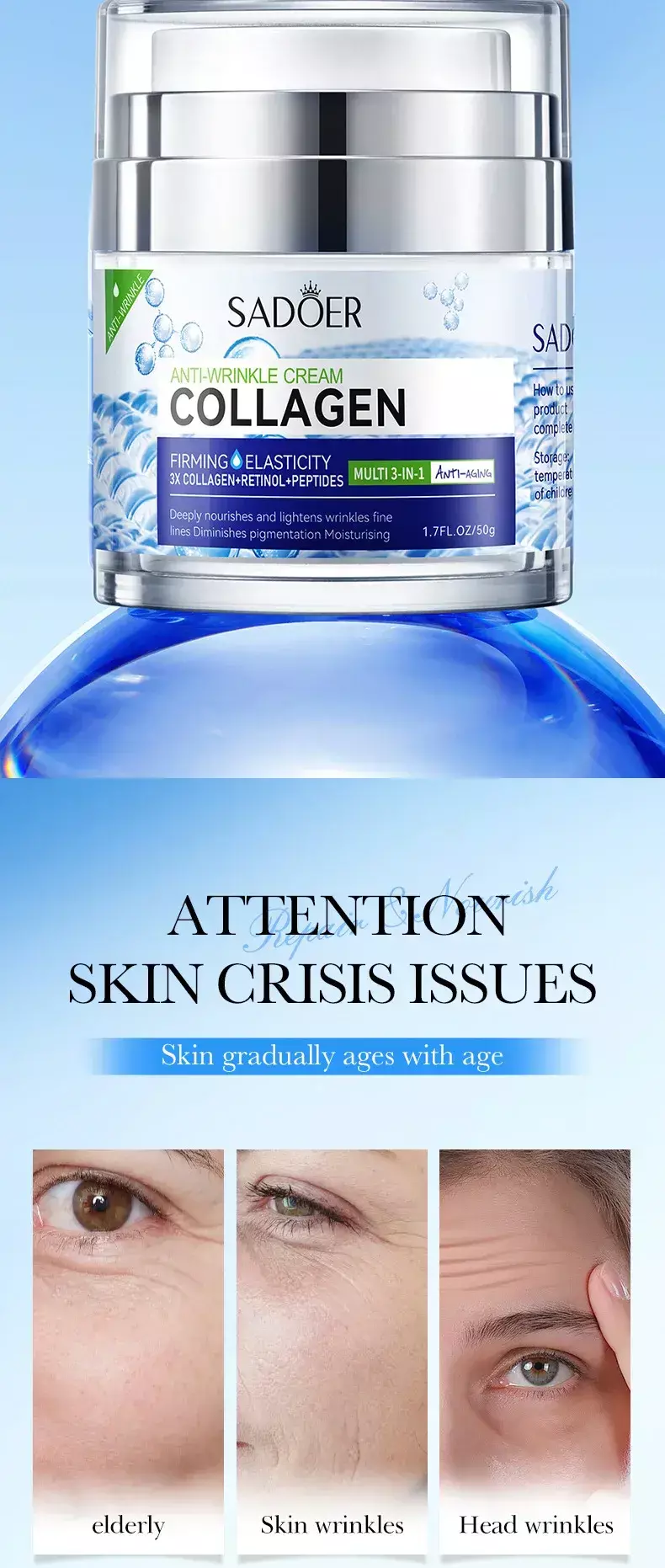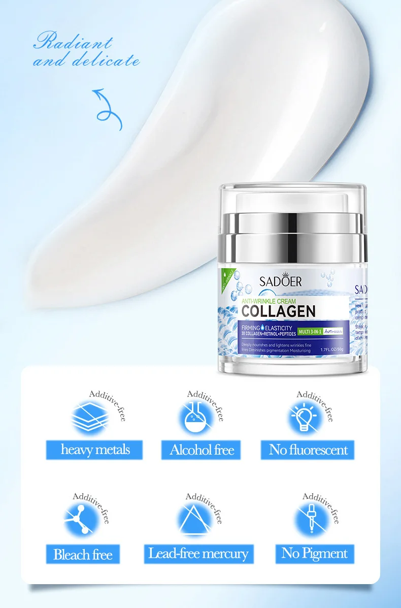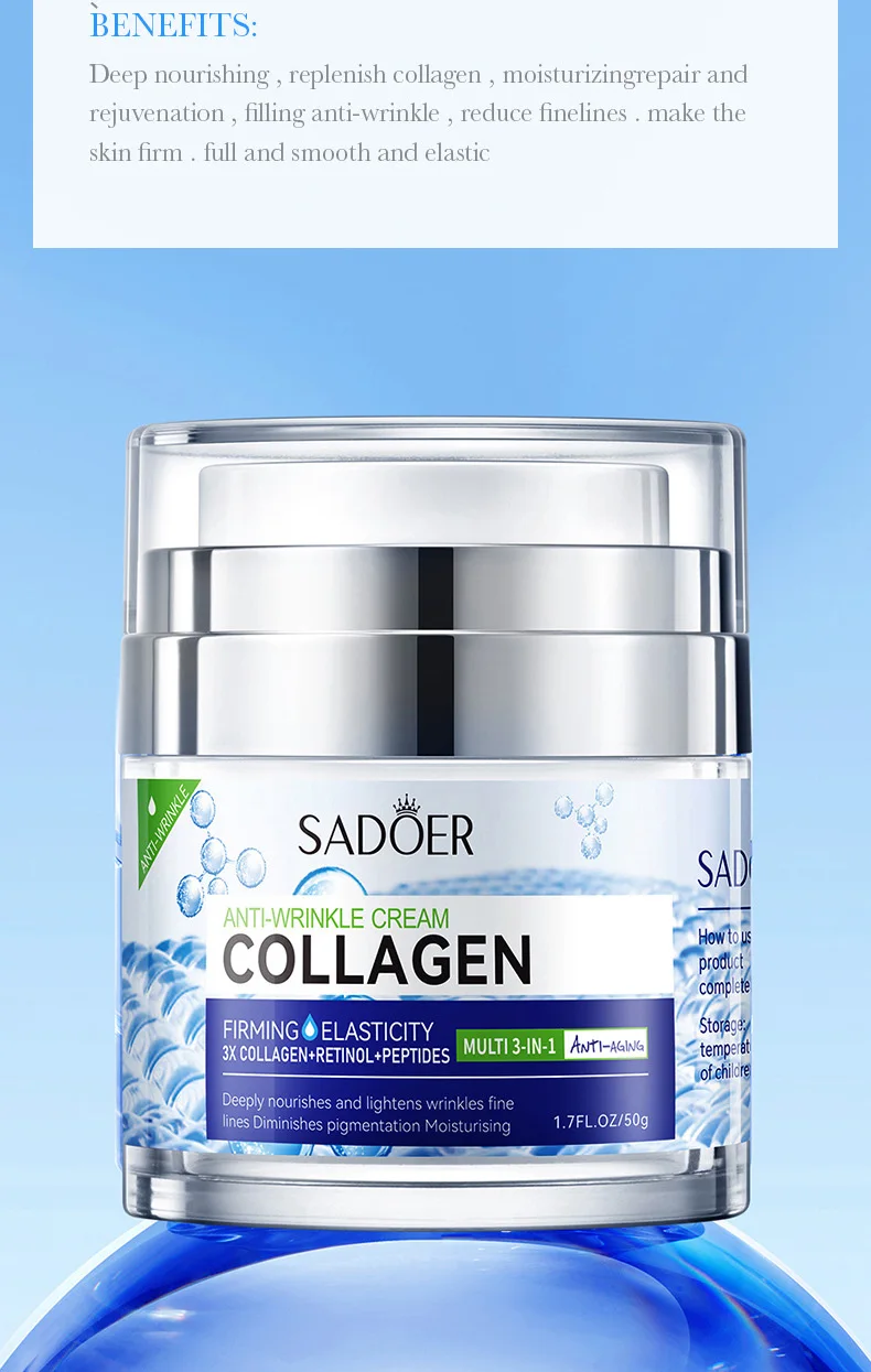 O Creme Facial Sadoer com Colágeno foi desenvolvido para hidratar profundamente e combater os sinais de envelhecimento, proporcionando uma pele mais firme, lisa e com aparência jovem.