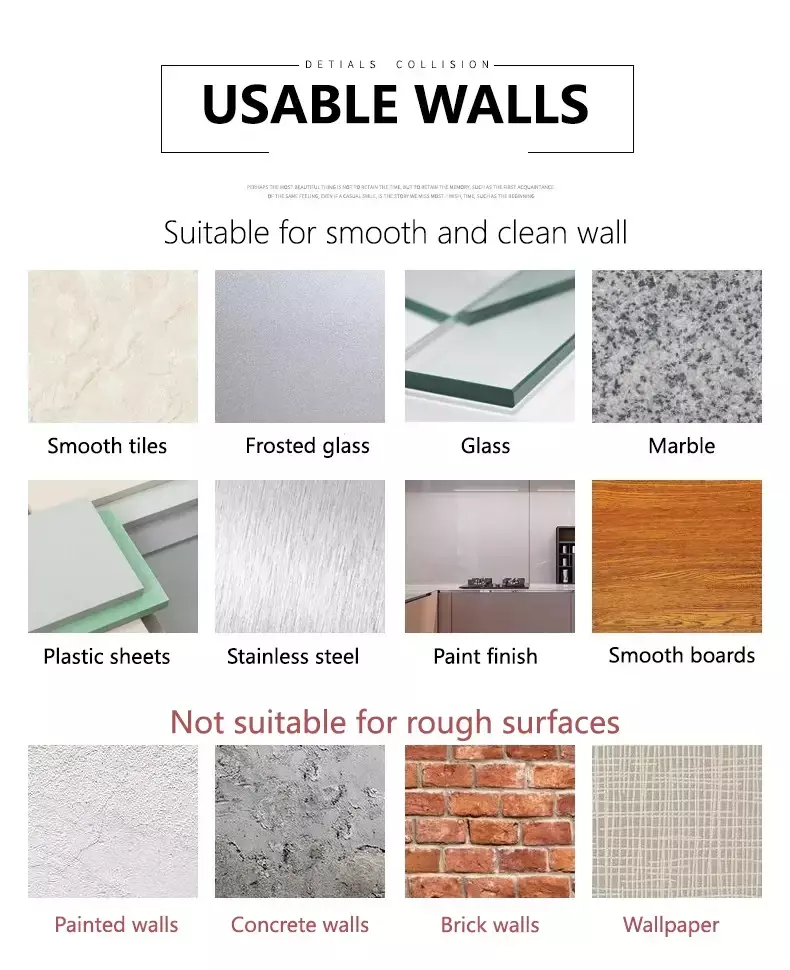 Os ganchos dupla face adesivos possuem adesivo de alta aderência, garantindo fixação firme em superfícies lisas como azulejos, madeira, vidro, metal, acrílico e mármore.