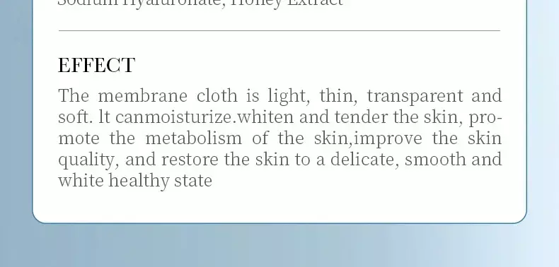 Cada máscara é feita de tecido ultrafino, com alto poder de absorção, garantindo que os nutrientes sejam entregues diretamente às camadas da pele.