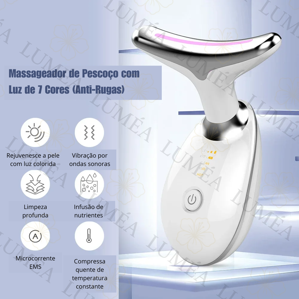Transforme sua rotina de beleza com o Massageador Facial LUMÉA™ 7 em 1, um dispositivo de alta tecnologia desenvolvido para proporcionar um verdadeiro tratamento estético no conforto da sua casa. Projetado para mulheres que buscam firmeza, luminosidade e juventude da pele, ele combina terapias LED, EMS e calor em um único aparelho elegante e portátil.
