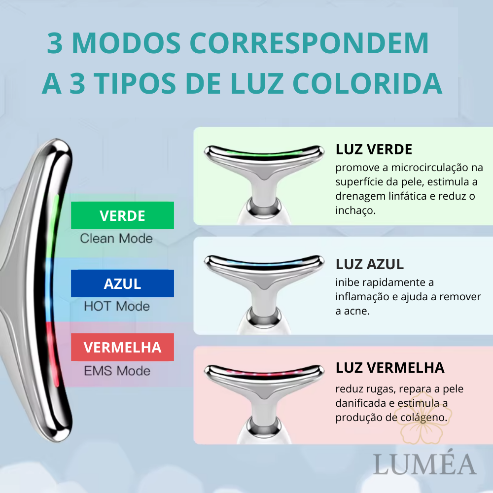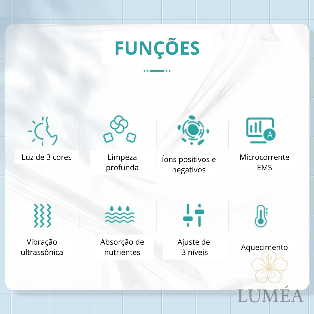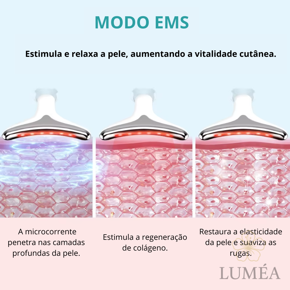 EMS Mode (Estimulação Muscular): Promove o rejuvenescimento com microcorrentes que tonificam a pele.