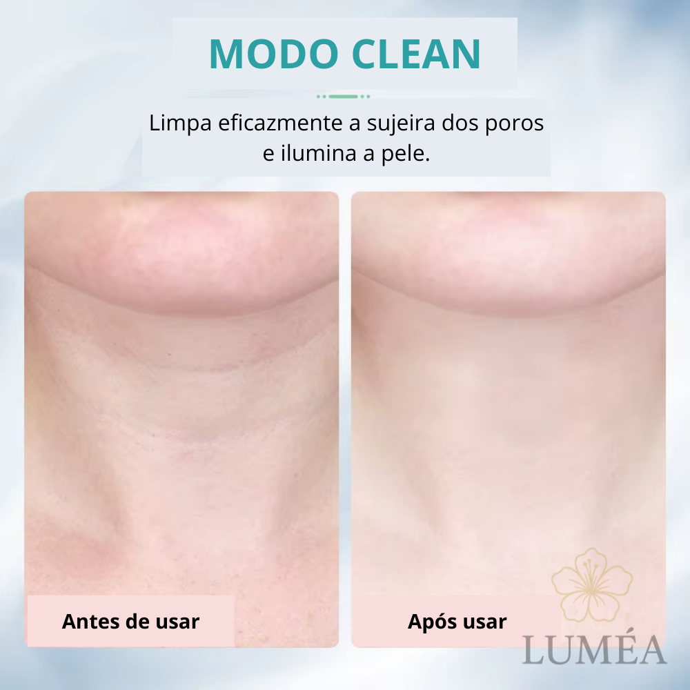 Clean Mode (Limpeza Profunda): Remove impurezas e resíduos dos poros, combate acne e revitaliza a pele opaca.
