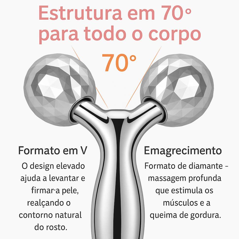 Com design em formato Y e rolamento 360°, este massageador desliza suavemente pela pele, estimulando a circulação, ajudando na redução de linhas finas e proporcionando um efeito lifting natural.