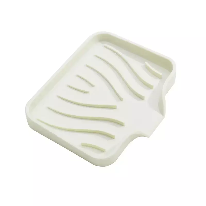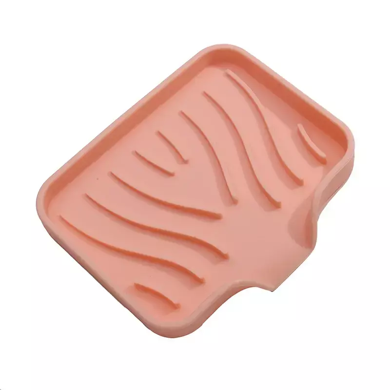 A Saboneteira de Silicone com Drenagem foi projetada com um sistema de escoamento inclinado, permitindo que a água escorra naturalmente, evitando o derretimento do sabão.