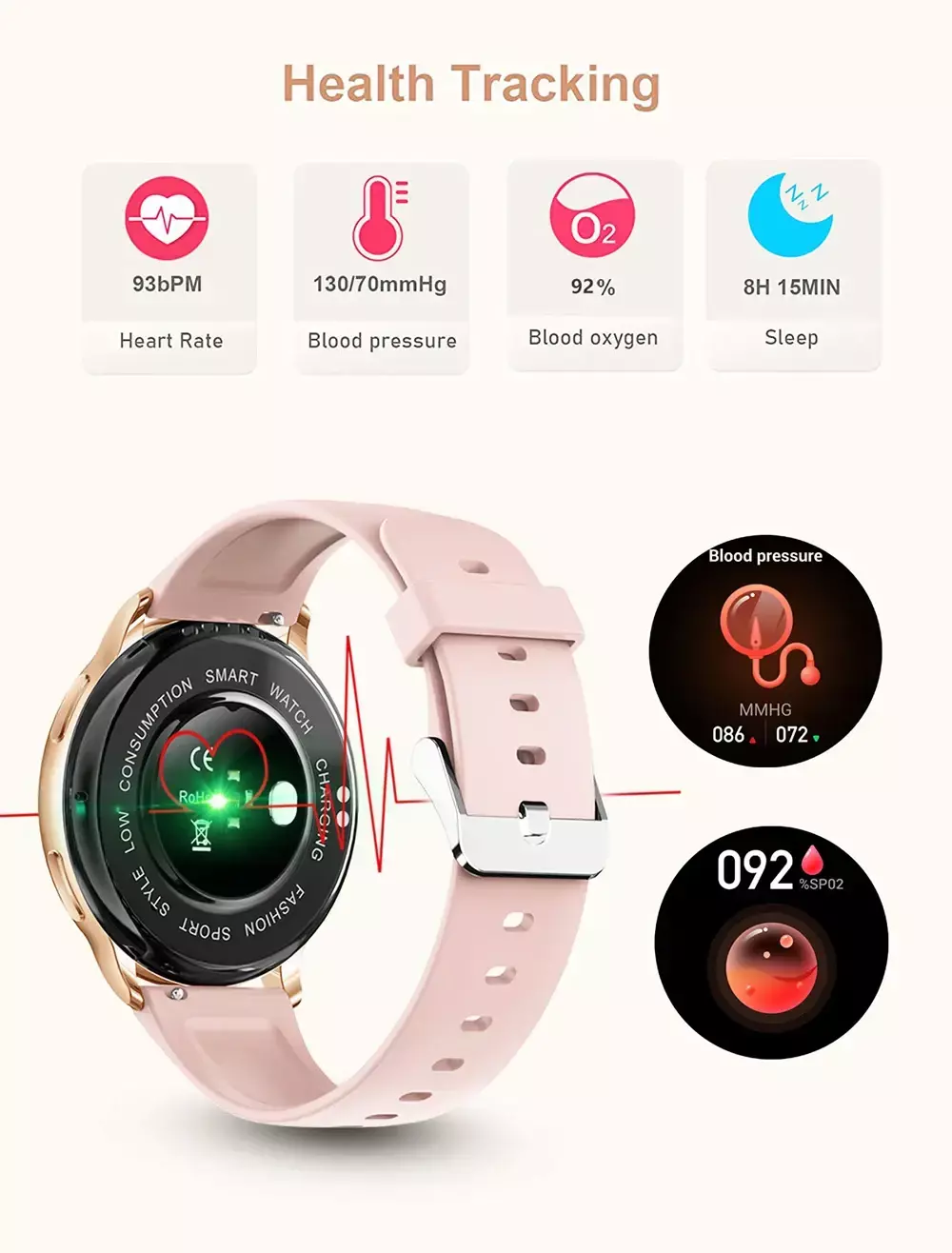 Com design moderno e acabamento refinado, ele é o acessório ideal para quem quer cuidar da saúde, acompanhar o dia a dia e estar sempre conectada — tudo isso com muito charme.