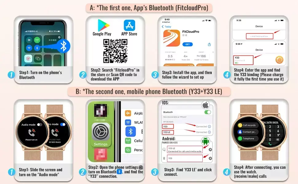 O relógio pode receber e fazer chamadas, e sincronizar contatos e registros com o telefone.